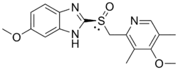 En 2001 se lanzó en EE. UU. el esomeprazol, como continuación de la patente del omeprazol. El esomeprazol es el (S)-(-)-enantiómero del omeprazol y proporciona una mayor biodisponibilidad y una mayor eficacia, en términos de control de la acidez gástrica, que el (R)-(+)-enantiómero del omeprazol. En teoría, al utilizar esomeprazol puro los efectos sobre la bomba de protones serán iguales en todos los pacientes, eliminando el «efecto metabolizador pobre» del racemato de omeprazol. Está disponible en cápsulas o comprimidos de liberación retardada y en forma de esomeprazol sódico para inyección/infusión intravenosa. Los preparados orales de esomeprazol son de cubierta entérica, debido a la rápida degradación del fármaco en las condiciones ácidas del estómago. Esto se consigue formulando cápsulas mediante el sistema de gránulos de unidades múltiples. Aunque el isómero (S)-(-)- es más potente en humanos, el isómero (R)-(+)- es más potente en ensayos con ratas, mientras que los enantiómeros son equipotentes en perros.[22]