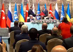 - ↑ «Guterres says agreement signed on export of grain by Black Sea» (en inglés). Interfax. 22 de julio de 2022. Consultado el 19 de junio de 2024.