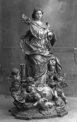 - ↑ La posición elevada de esta figura evocaba uno de los ángeles de la Virgen del Socorro de la Catedral de Murcia, obra de Salzillo en 1734, aunque también se atribuye a Antonio Dupar.