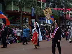 La colectividad armenia de Buenos Aires durante el desfile inaugural de la XXVI Fiesta Nacional del Inmigrante, en Oberá, provincia de Misiones. | ||