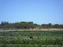 - ↑ a b Hughes, Judith Corinne; y Owen, Olga Marisa: Trabajadores migrantes bolivianos en la horticultura argentina: transformación del paisaje rural en el valle inferior del río Chubut», artículo publicado en la Universidad Nacional de la Patagonia San Juan Bosco, sede Trelew.