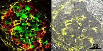 - ↑ Malliaras K.; Zhang Y.; Seinfeld J.; Galang G.; Tseliou E.; Cheng K.; Sun B.; Aminzadeh M. ; Marbán E. (2013). «Cardiomyocyte proliferation and progenitor cell recruitment underlie therapeutic regeneration after myocardial infarction in the adult mouse heart». EMBO Molecular Medicine 5: 191-209. doi:10.1002/emmm.201201737.