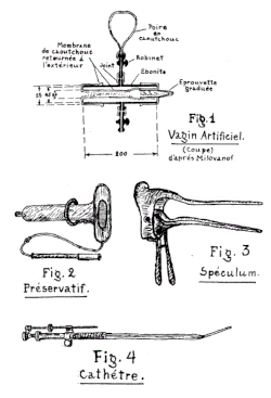- Inseminación. El semen se deposita en la vagina, en el canal cervical, en el útero, en las trompas de Falopio o en fondo del saco de Douglas. La vía más usada es la intrauterina. La intravaginal puede realizarse con semen completo, mientras que en la intracervical y en la intrauterina debe llevarse a cabo una preparación para eliminar las PGs. En la intracervical se usa un catéter fino para introducir los espermatozoides y después se coloca un capuchón que se adapta una convexidad del exocérvix para impedir el reflujo del semen a la vagina que es retirado a las 6-8 horas. La inseminación intrauterina se realiza con un catéter fino con el cual se introducen los espermatozoides en la cavidad uterina. Si la paciente está sometida a estimulación, el catéter suele franquear fácilmente el orificio cervical interno, pero en ocasiones es necesario pinzar y traccionar del cuello o pasar previamente el histerómetro. La inyección de semen se realiza lentamente para evitar la distensión del útero y que se produzcan contracciones que puedan expulsarlo a la vagina.