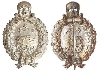 La insignia es plateada y tiene forma ovalada presentando un Totenkopf (una calavera y tibias cruzadas) en la parte superior en referencia a la calavera de Brunswick. Estaba rodeada por una corona de dos partes, hojas de roble a la izquierda y hojas de laurel a la derecha; ambas atadas con un lazo en la parte inferior. La pieza central era un tanque A7V estilizado que cruzaba un enredo de alambre de púas de este a oeste con tres shrapnel estallando sobre él. Debía llevarse debajo del bolsillo izquierdo del pecho.