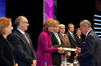 El galardón fue entregado en el centro de convenciones Gonzalo Jiménez de Quesada de la ciudad de Bogotá, en un acto solemne que contó con la presencia de la ministra de educación María Fernanda Campo y el presidente de la República Juan Manuel Santos Calderón.