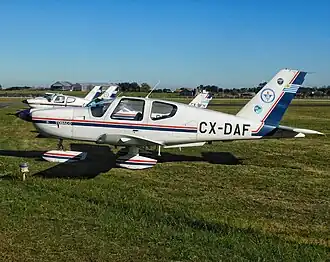 ![]() SOCATA TB-10 Tobago matrícula CX-DAF, del Instituto de Adiestramiento Aeronáutico en el Aeropuerto Internacional Ángel S. Adami, 2019. | ||