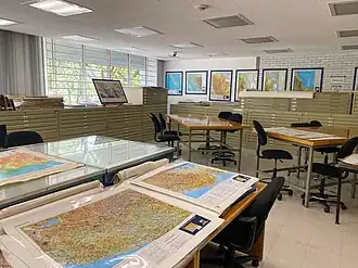 Está organizado en tres departamentos (geografía económica, geografía física y geografía social), un Laboratorio de Análisis Geoespacial, una sección editorial, la Unidad de Tecnologías de la Información, y una biblioteca que cuenta con más de 35 000 títulos y alberga una vasta colección sobre geografía, cuenta también con una mapoteca, con más de 20 000 documentos). Además alberga el Laboratorio Nacional de Observación de la Tierra.[5][6]