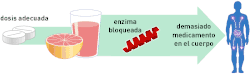 - La inhibición de las enzimas que metabolizan el fármaco a un metabolito inactivo mediada por el jugo de pomelo conduce a dosis demasiado altas del fármaco en el cuerpo [28]