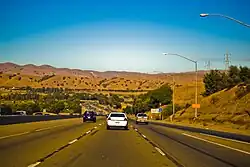 ![]() Vista de la I-680 descendiendo desde Mission Pass en sentido norte | |||||||||