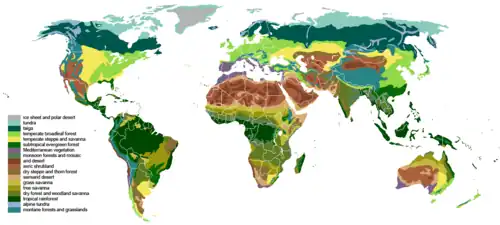↑Martens, Carola; Hickler, Thomas; Davis-Reddy, Claire; Engelbrecht, Francois; Higgins, Steven I.; von Maltitz, Graham P.; Midgley, Guy F.; Pfeiffer, Mirjam; Scheiter, Simon (Enero 2021). "Large uncertainties in future biome changes in Africa call for flexible climate adaptation strategies". Global Change Biology. 27 (2): 340–358. Bibcode:2021GCBio..27..340M. doi:10.1111/gcb.15390. PMID 33037718. S2CID 222255994.