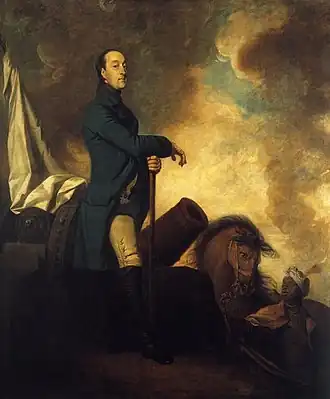 ![]() El Conde de Schaumburg Lippe, comandante de las fuerzas anglo-portuguesas que derrotaron a las ofensivas de España y Francia contra Portugal. Pintura de Joshua Reynolds. | ||||