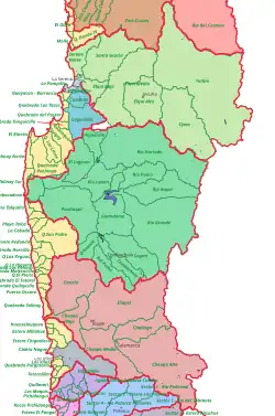 - ↑ Comisión Nacional de Riego, Ministerio de Agricultura de Chile, Diagnóstico para desarrollar Plan de Riego en Cuenca del Choapa y Quilimarí, Informe Final, 2016