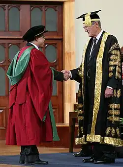 En algunas universidades, los grados académicos de doctor o maestro se otorgan en ceremonia de investidura, donde al candidato se le inviste con los elementos propios de la dignidad, como la muceta, la toga, el anillo o los libros.[3]