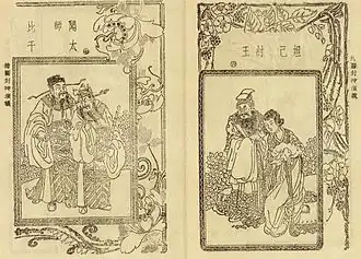 Ilustraciones de Fengshen Yanyi. Izquierda:Bi Gan y Wen Zhong; Derecha: el rey Zhou y Daji.