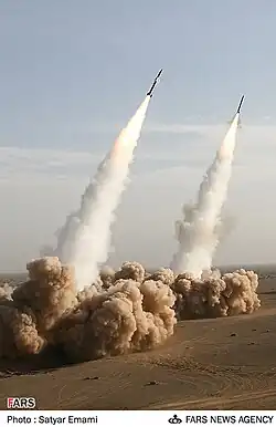 Pruebas con los cohetes Zelzal-3 durante los ejercicios militares ''Gran Profeta II''