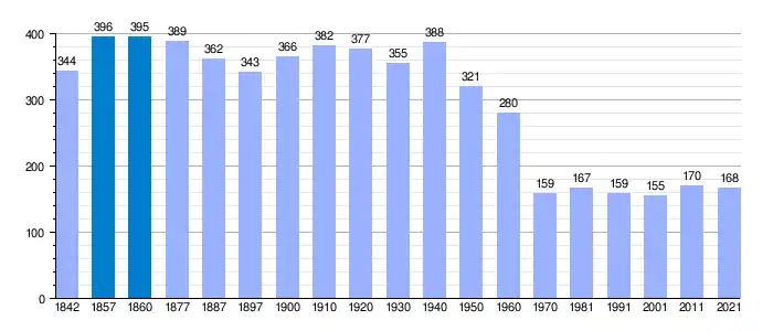 | Gráfica de evolución demográfica de Irañeta[3] entre 1842 y 2021 |
