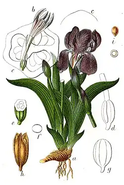 Iris: nombre genérico llamado así por Iris la diosa griega del arco iris.[3]