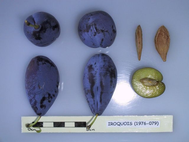 Iroquois es una variedad cultivar de ciruelo (Prunus domestica), de las denominadas ciruelas europeas.[2] Una variedad de ciruela criada en 1937 en la « "New York State Agricultural Experiment Station" », Geneva, Estados Unidos, mediante el cruce de las variedades 'Italian Prune' x 'Prinlew'. Las frutas son de tamaño mediano de piel rojo púrpura a azul violácea recubierta de capa ligera de pruina violácea;tienen una pulpa de color amarillo verdoso, textura firme, jugosa, y sabor agridulce muy agradable. Tolera las zonas de rusticidad según el departamento USDA, de nivel 5b, 5a, 6b, 6a, 7b, 7a.[3][4]