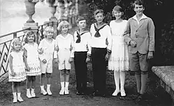 ![]() Isabel (primera por la izquierda) junto a sus hermanos, 1926. | ||