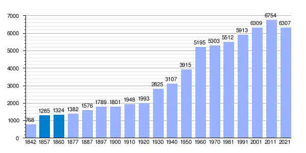 | Gráfica de evolución demográfica de Íscar[4] entre 1842 y 2021 |