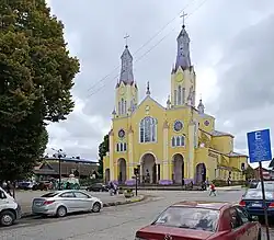 - Quellón: 17.562[12] habitantes, es la tercera ciudad más grande de Chiloé. La ciudad fue fundada en 1906 por una compañía destilatoria que decayó en 1952. Su nombre original era Llauquil.[13]