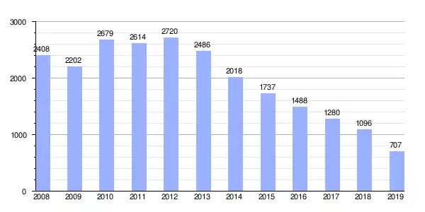 | Gráfica de evolución demográfica de Isla Mayor[4] entre 2001 y 2021 |