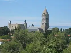 Vista de la iglesia de Saint-Philbert y, a la izquierda, el castillo de Noirmoutier.
