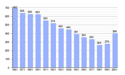 | Gráfica de evolución demográfica de Isolabella entre 1861 y 2001 |