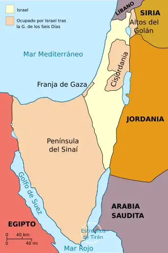 Israel (en hebreo: יִשְרָאֵל Yisra'el; en árabe: إِسْرَائِيل Isrā'īl), oficialmente Estado de Israel (en hebreo: מְדִינַת יִשְרָאֵל, romanizado: Medinat Yisra'el, AFI: [mediˈnat jisʁaˈʔel]; en árabe: دولة إِسرائيل, romanizado: Dawlat Isrā'īl, AFI: [dawlat ʔisraːˈʔiːl]), es un país soberano de Asia, ubicado en la región de Oriente Próximo, en el Levante mediterráneo. Limita al norte con el Líbano, al noreste con Siria, al este con Jordania, Cisjordania (Palestina) y el mar Muerto, al oeste con la Franja de Gaza (Palestina), al suroeste con la península del Sinaí (Egipto) y al sur con el golfo de Áqaba, en el mar Rojo. Con una población de casi 10 millones de habitantes,[15] la mayoría de los cuales son judíos, Israel es el único Estado judío del mundo.[16] Es también el hogar de árabes musulmanes, cristianos, drusos y samaritanos, así como otros grupos religiosos y étnicos minoritarios. La capital —con reconocimiento internacional limitado—, sede del gobierno y mayor ciudad del país es Jerusalén. El principal centro económico y financiero se encuentra en la ciudad de Tel Aviv, y el mayor centro industrial se localiza en Haifa.