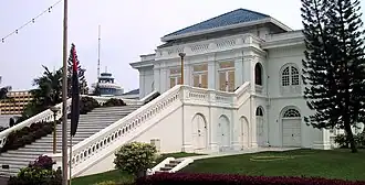 La característica más distintiva del Gran Palacio es su arquitectura anglo-malaya, que se caracteriza por su cúpula de diseño malayo que contrasta con el techo azul de influencia anglosajona.