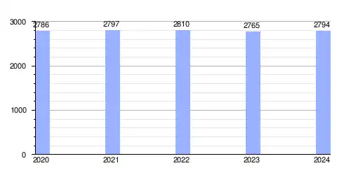 Hasta 2024 la población era de 2794 habitantes,[2] con una densidad de población de 111,00 hab/km².[2]
