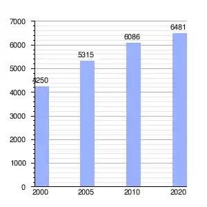 Cuenta con 6481 habitantes lo que representa un incremento promedio de 0.64% anual en el período 2010-2020 sobre la base de los 6086 habitantes registrados en el censo anterior. Ocupa una superficie de 1.901 km², lo que determina al año 2020 una densidad de 3408 hab/km².[8]