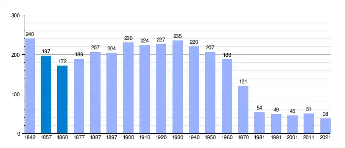 | Gráfica de evolución demográfica de Izalzu[5] entre 1842 y 2021 |