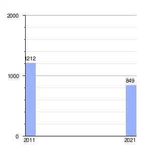 | Gráfica de evolución demográfica de Izeda, Calvelhe e Paradinha Nova entre 2011 y 2021 |