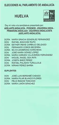 5º | - | - | Oposición | Antuan Vargas y Hayat Abdel-lah Ahmed | Dentro de Adelante Andalucía (2 diputados de 109) |