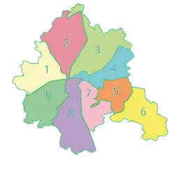 Járkov esta organizada en 9 raiones o barrios: