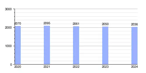 Hasta 2024 la población era de 2036 habitantes,[2] con una densidad de población de 47,50 hab/km².[2]