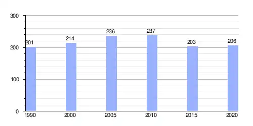 Hasta 2020 la población era de 206 habitantes,[1] con una densidad de población de 264,1 habitantes por kilómetro cuadrado.[1] Con una estructura demográfica conformada por 104 hombres que representan el 50,5% y 102 mujeres para un 49,5% de la población total.[1] De estos, el 25,2% corresponden a menores de edad y personas de 0-19 años, 50% a personas entre 20-64 años y el 24,8% a personas de 65 o más años.[1]