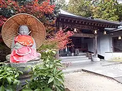 El salón principal se encuentra al otro lado de una pequeña plaza desde la puerta de entrada. Frente a él se encuentra un lavabo de piedra, y en el lado izquierdo de la veranda hay un recinto de madera que alberga una estatua de Binzuru. Unos escalones de piedra conducen al salón Daishi desde la parte occidental del salón principal. Junto a estas escaleras se encuentra una imagen de piedra de Jizō bajo un refugio de madera que tiene la atribución de ser capaz de curar la ceguera.[4][5]