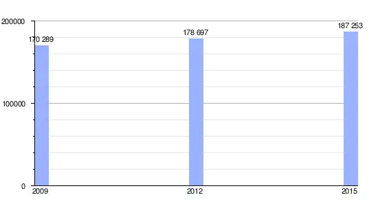 | Gráfica de evolución demográfica de Jacmel entre 2009 y 2015 |