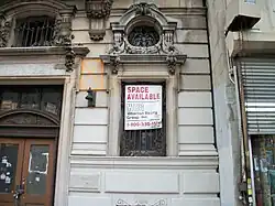 El edificio original del banco fue construido entre 1897 y 1898 en estilo Beaux-Arts . Es un esbelto edificio de ladrillo de cuatro pisos con una fachada de piedra caliza . Presenta una planta baja profundamente rústica con ventanas protegidas por elegantes rejas de metal. La fachada está enmarcada por pilastras de dos pisos y cubierta con elaboradas ménsulas talladas, guirnaldas y otros elementos.[1]