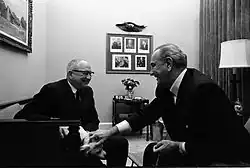 Eastland a menudo estaba en desacuerdo con la política de Johnson sobre derechos civiles, pero mantuvieron una estrecha amistad basada en largos años juntos en el Senado. Johnson a menudo buscaba el apoyo y la orientación de Eastland en otras cuestiones, como el nombramiento de Abe Fortas en 1968 como Presidente del Tribunal Supremo. El Sur Sólido se le opuso.[39] En la década de 1950, Johnson era uno de los tres senadores del Sur que no firmaron el Manifiesto del Sur de resistencia a Brown contra la Junta de Educación, pero Eastland y la mayoría de los senadores del Sur sí lo hicieron, prometiendo resistencia a la integración escolar.