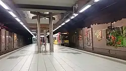 Con un andén central, las paredes de la estación están recubiertas de retratos de personajes de series aparecidas en el semanal Le Journal de Spirou.[1]