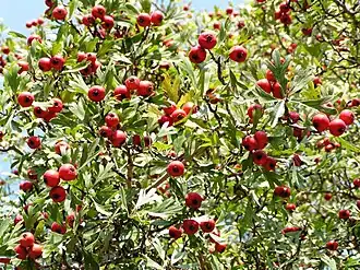 ![]() Frutos del acerolo Crataegus azarolus una de las especies cultivadas en el Orto Botanico Conservativo Francesco Busnello | ||