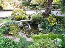 - Jardín japonés, cerca de la entrada donde se sitúan los jardines formales adyacente a la rosaleda.