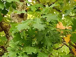 Formando un arco, a modo de cinturón que rodea el límite exterior de la plaza, se han dispuesto numerosos árboles del género Quercus ―el nombre romano de robles y encinas―, en homenaje a estas plantas tan útiles para las comunidades humanas. Aquí se pueden contemplar especies procedentes de toda el área mundial de distribución del género (hemisferio norte principalmente): a la izquierda del paseo central, conforme se entra en las colecciones vegetales, las quercíneas ibéricas (la encina o carrasca, Quercus ilex subsp. ballota, el quejigo (Q. faginea), el rebollo (Q. pyrenaica), el alcornoque (Q. suber) o la coscoja (Q. coccifera); a la derecha, los procedentes de otras zonas del mundo, como el roble de Hungría (Q. frainetto), el roble persa (Quercus castaneifolia), el roble de Armenia (Q. pontica), un roble originario de China, Corea y Japón (Q. acutissima) y los robles de América del Norte Q. muehlenbergii y Q. macrocarpa, entre otros.