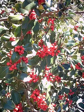 ![]() Acebo Ilex aquifolium, planta de la zona de robledal. | ||