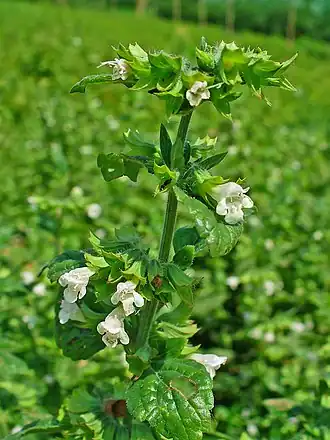 Melissa officinalis ó Toronjil una de las plantas cultivadas en el jardín de simples. | ||