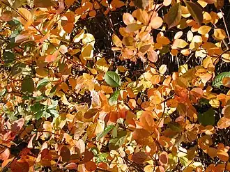 ![]() Arandanos en otoño, planta cultivada en el Itä-Suomen yliopiston kasvitieteellinen puutarha, Joensuun kampus. | ||