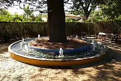 El agua juega aquí un papel ornamental de primer orden con una fuente que hace como el manantial de un río que atraviesa el jardín botánico y que desemboca en un lago.